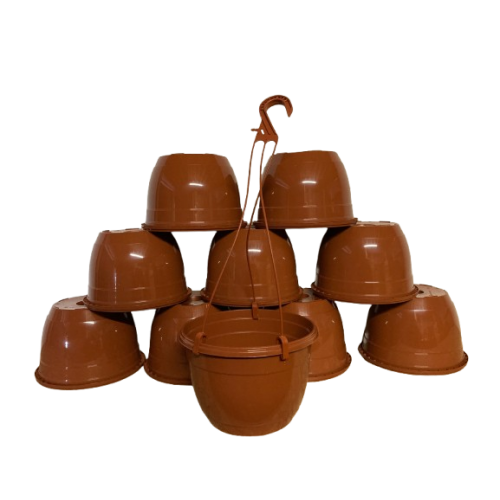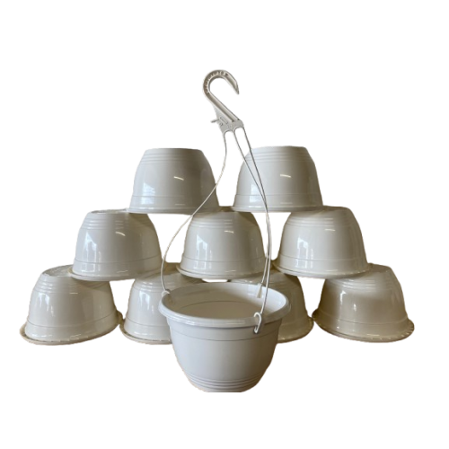 10 X 20 CM plastic hanging plant pots / baskets. 2.5 litres. These are great for growing a range of flowers or tomatoes. Height of bowl is 12.5cm . Internal reservoir, complete with drainage holes, and is supplied with a clip-on hanger.